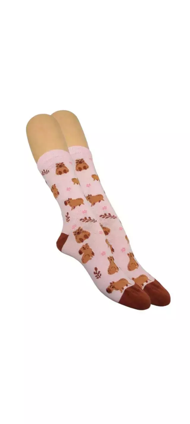 Elegí la comodidad todos los días con las medias largas estilo soquete de mujer estampado "Capibara". Su diseño exclusivo realza cualquier look, combinando estilo y comodidad en una sola prenda.